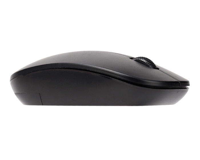 Mouse inalámbrico con compartimento para guardar control USB y botón de scroll.