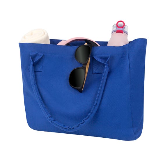 Incluye asas reforzadas y práctico bolsillo interno para artículos pequeños.