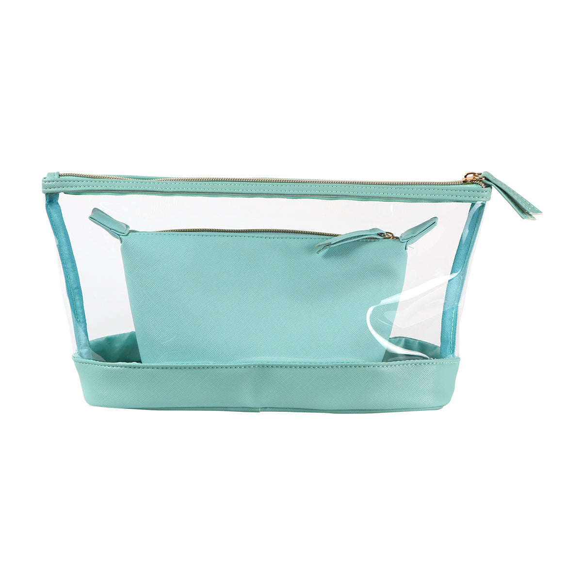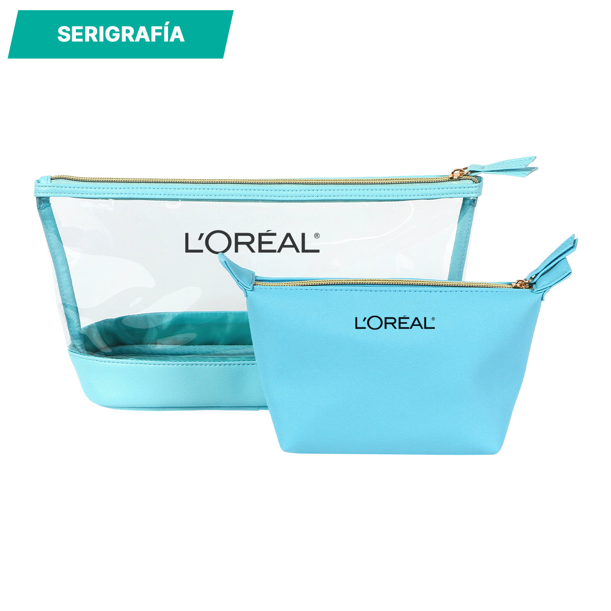 Incluye una cosmetiquera grande fabricada en plástico PVC transparente, perfecta para visualizar y acceder rápidamente a su contenido, con cierre seguro y diseño resistente.