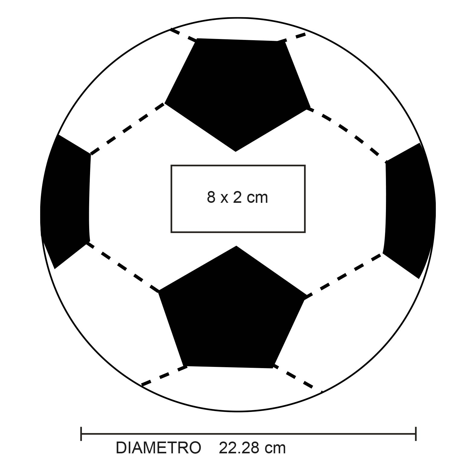 alón de futbol talla 5, con 32 gajos cosidos a maquina (hexagonos y pentagonos), acabado texturizado e hilos de goma laminados para mayor resistencia.