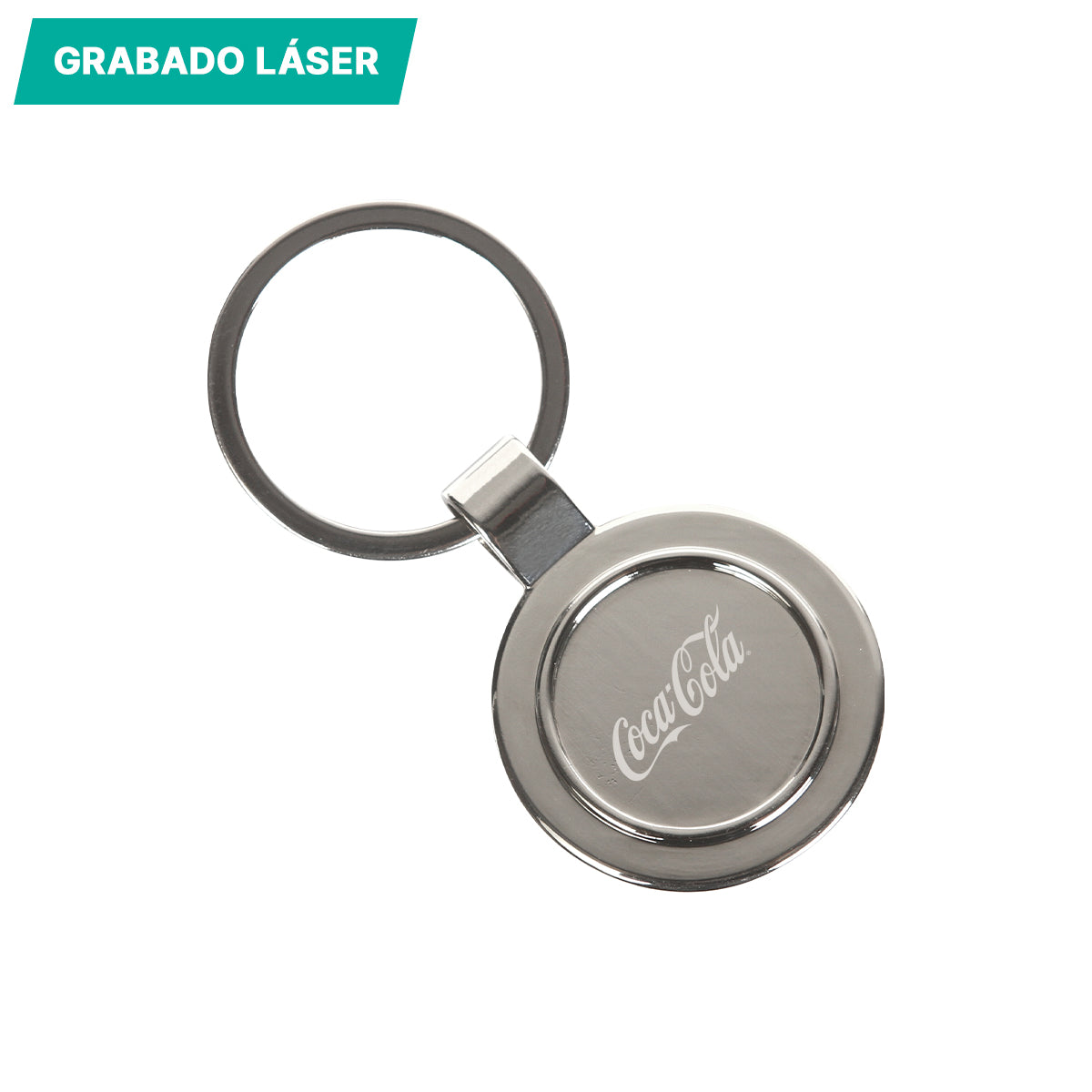 Llavero fabricado en acero, aleación de zinc con acabado en matte nickel, con un detalle decorativo de balón de fútbol hecho en plástico PVC.