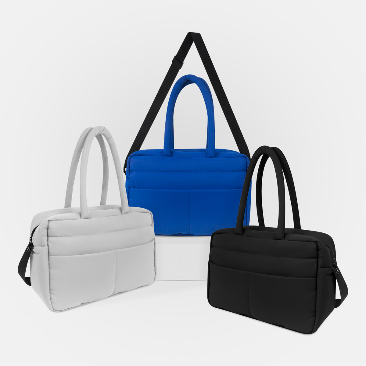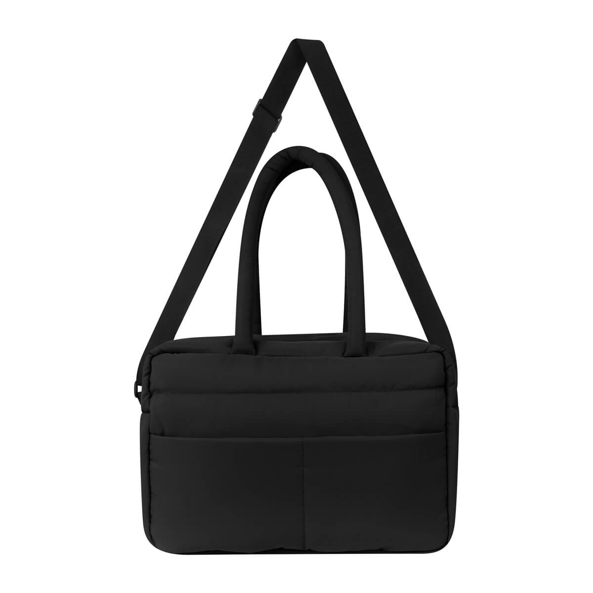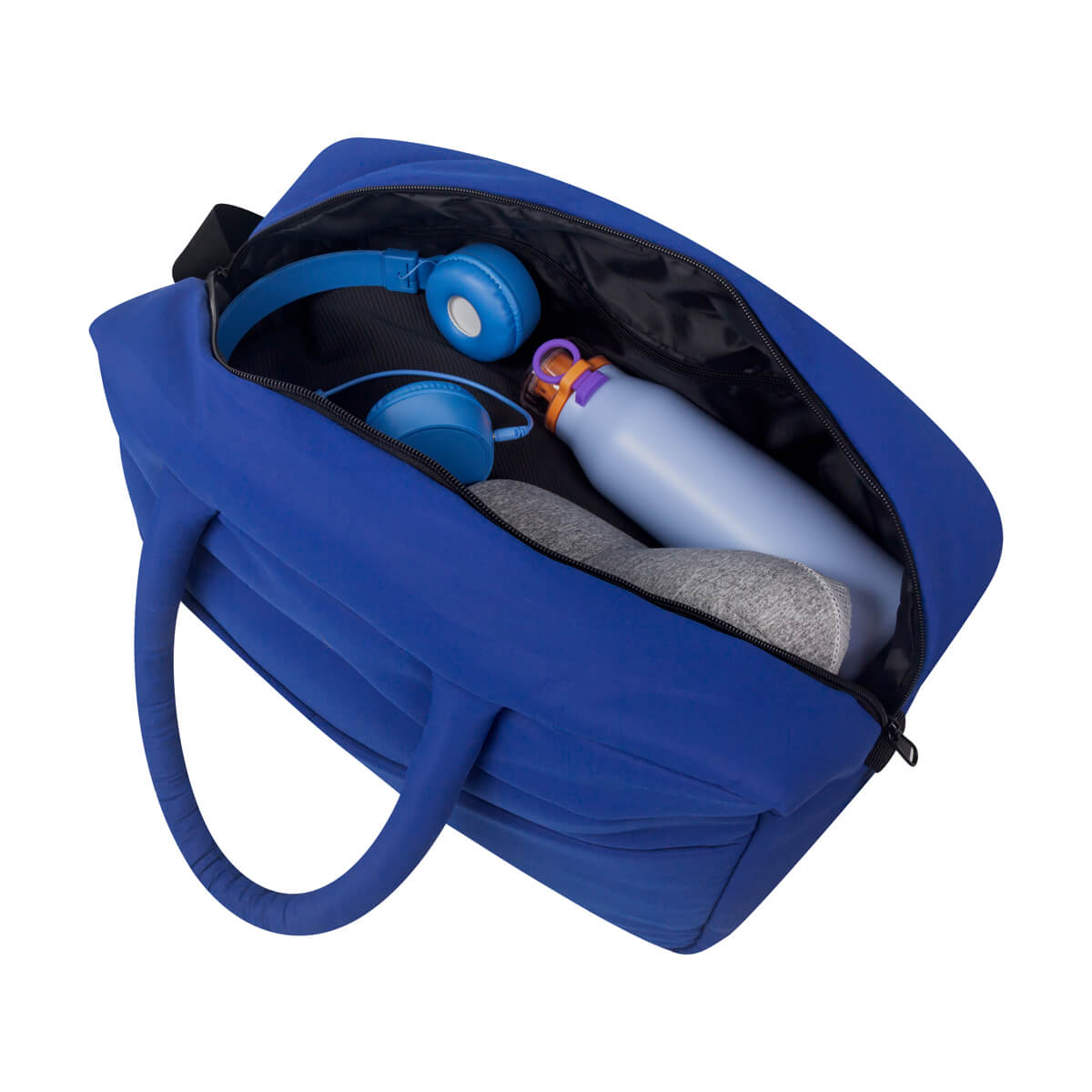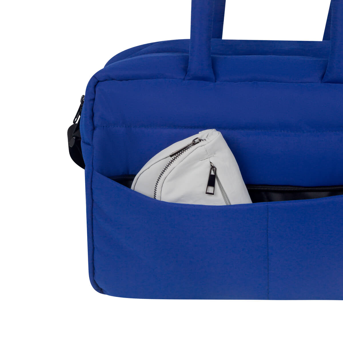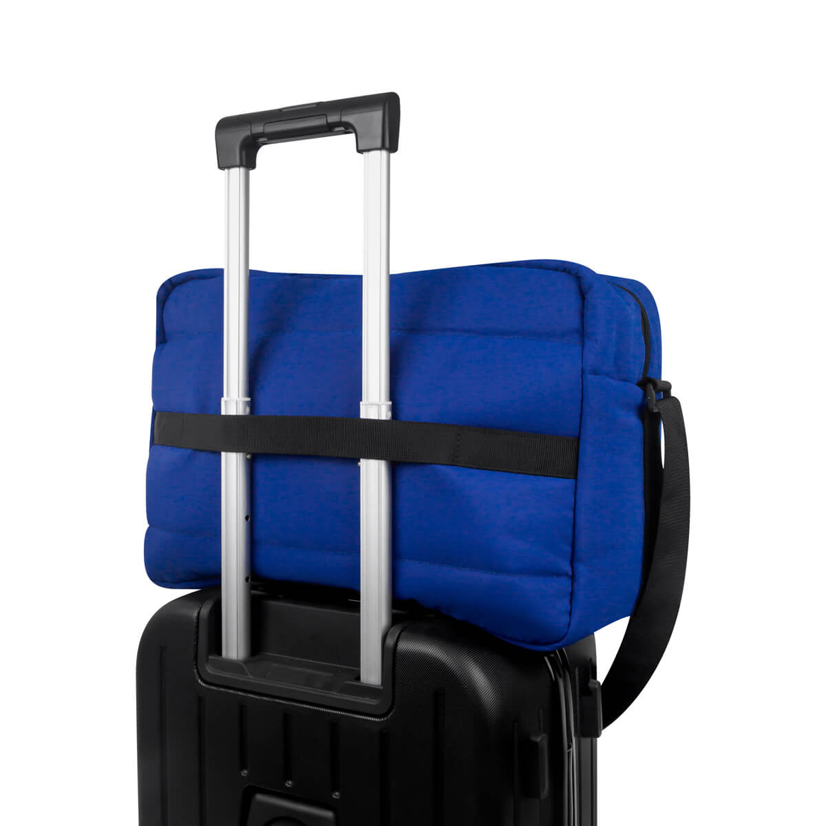 Cuenta con asas de mano del mismo material, asa de poliéster ajustable para hombro y banda para colocar en trolley.